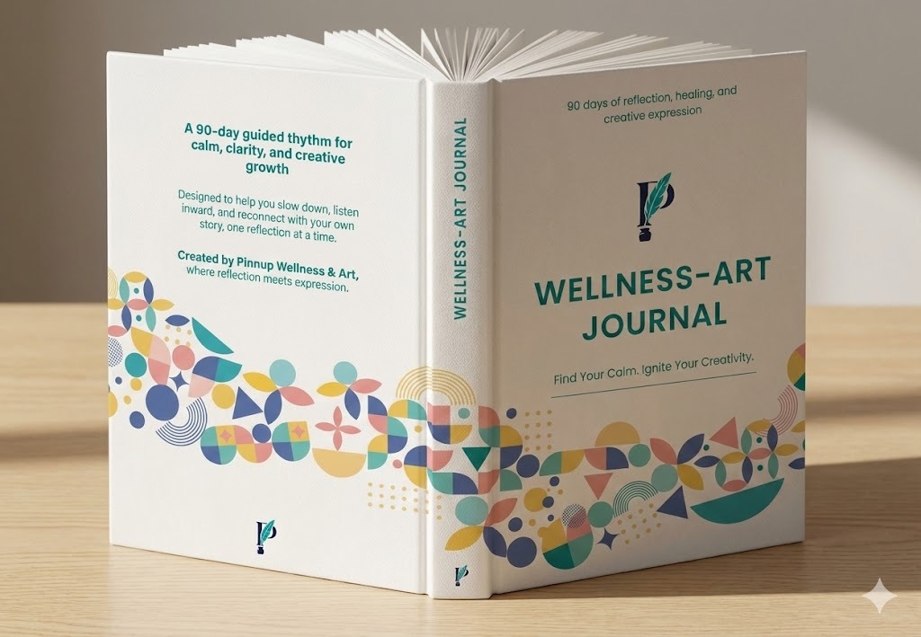 The first tool in the Lab is the Pinnup Wellness–Art Journal — a 90-day guided rhythm built for people who are carrying a lot and want a gentle, repeatable way to process it.